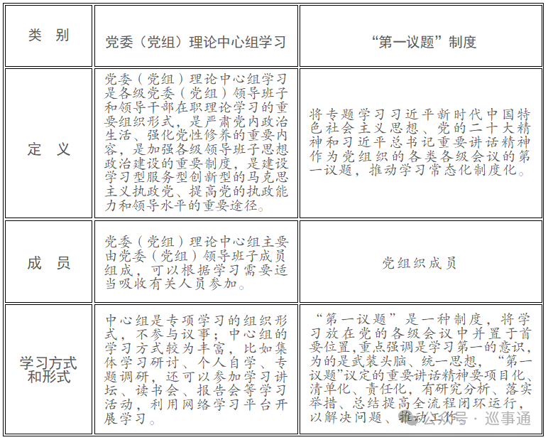 党委(党组)理论中心组学习与“第一议题”制度的区别: