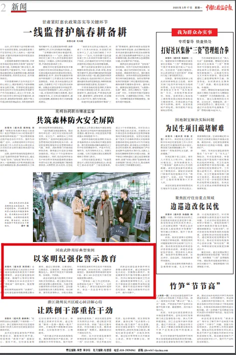典型案例是最好的“活教材”。武陟县纪委监委持续做深做实警示教育,通过以案说德、以案说纪、以案说法、以案说责,用身边事警醒身边人,教育引导党员干部知敬畏、存戒惧、守底线。